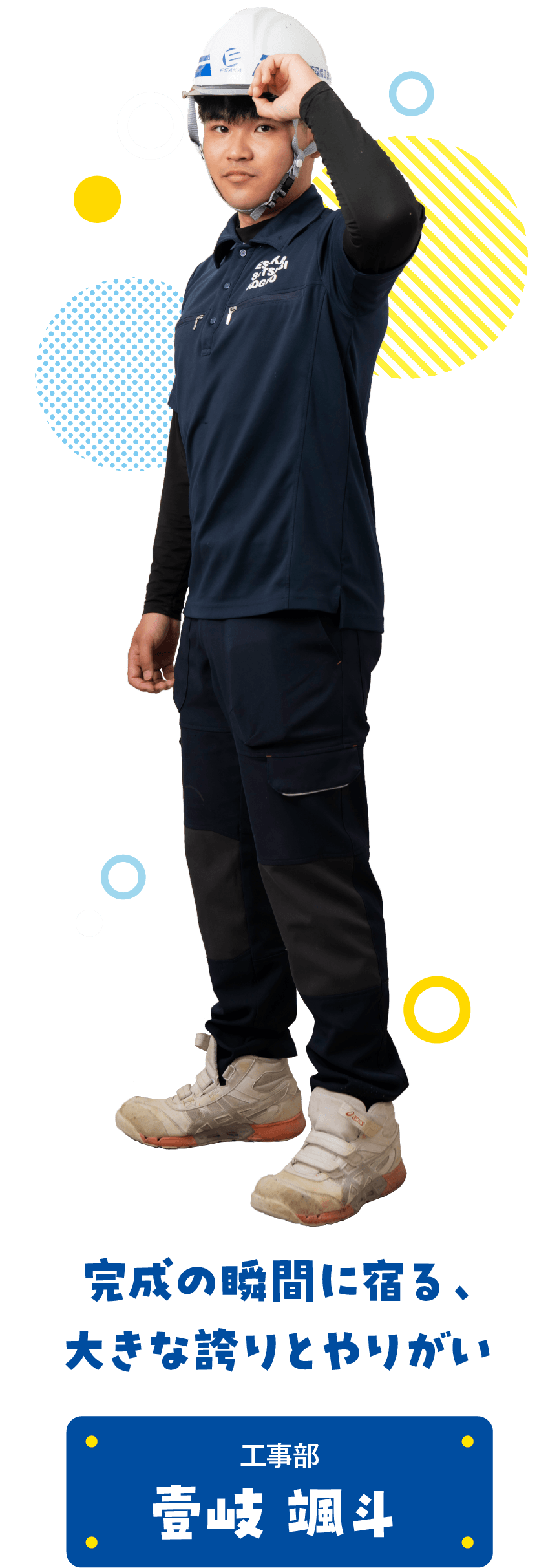 自分が施工に携わった建物が完成し、形として残ることに大きな達成感があります。教えられる側から教える側へと役割が変わる中で、仲間と共に現場をつくり上げる責任と誇りを感じています。まだ学ぶことも多く、さらなるステップアップを目指せることがやりがいです。