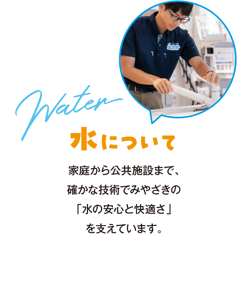 快適な生活環境づくりは、私たちの暮らしに欠かせません。江坂設備工業では、「水道」「お風呂」「トイレ」などの水まわり工事から、ビルの空調・冷暖房設備まで幅広く手がけています。建物に生命を与える動脈・静脈をつくり、健康で安全な暮らしを支える「縁の下の力持ち」として、宮崎の暮らしを一緒に支える仲間を探しています。