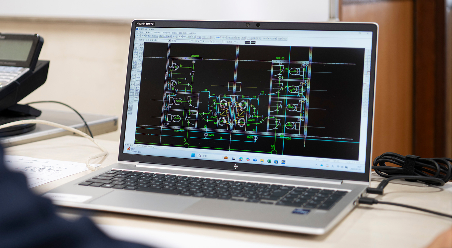私たちの暮らしに欠かせない空調や給排水といった設備。それらが建物の中でどのように機能するか、その「心臓部」と「血管」を設計するのが、設計積算の仕事です。CADを使い、お客様のご要望や建物の条件に合わせて最適なプランを練り上げ、工事に必要な資材や費用を算出します。