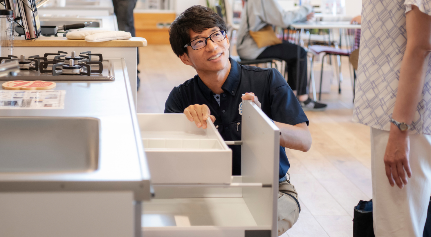 「キッチンをもっと使いやすくしたい」、「お風呂でゆっくり疲れを癒したい」。 お客様一人ひとりが描く、理想の暮らし。その夢をヒアリングし、最高の形で実現するためのお手伝いをするのが、リフォーム総合職(営業・施工管理)です。