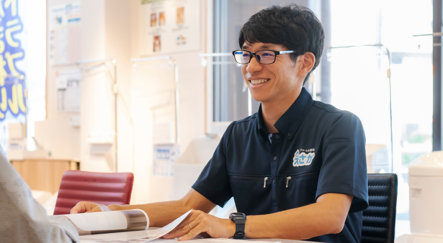 お客様との会話の中から潜在的なニーズを汲み取り、専門的な知識をもとに最適なプランをご提案。お見積りから職人の手配、工事の管理、そしてお引き渡しまで、一貫して担当します。お客様から直接「あなたにお願いしてよかった」という感謝の言葉をいただけるのが、この仕事最大の喜びです。